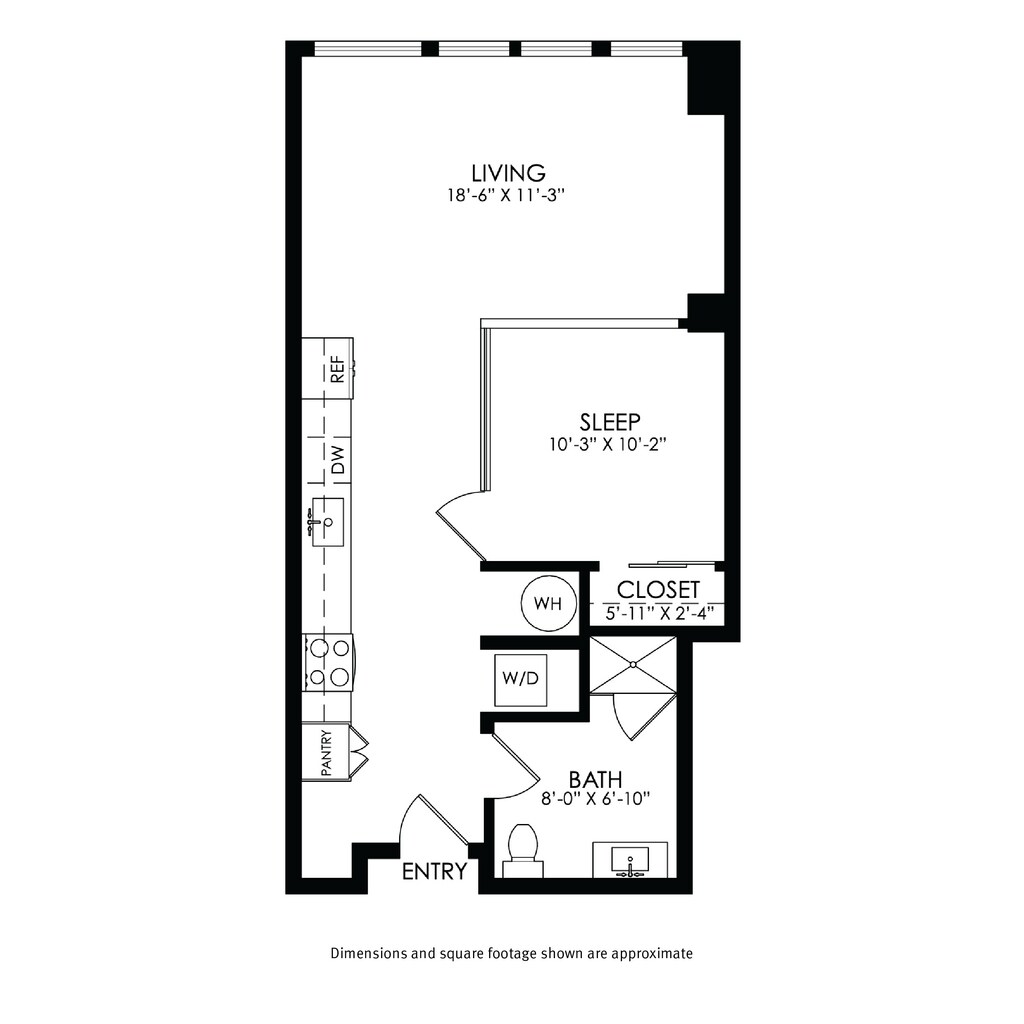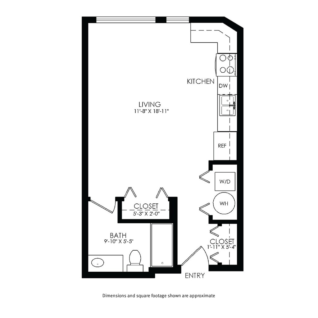 Estudio, 1 Baño, 450-572 pies²Disponible AhoraGalería del Modelo