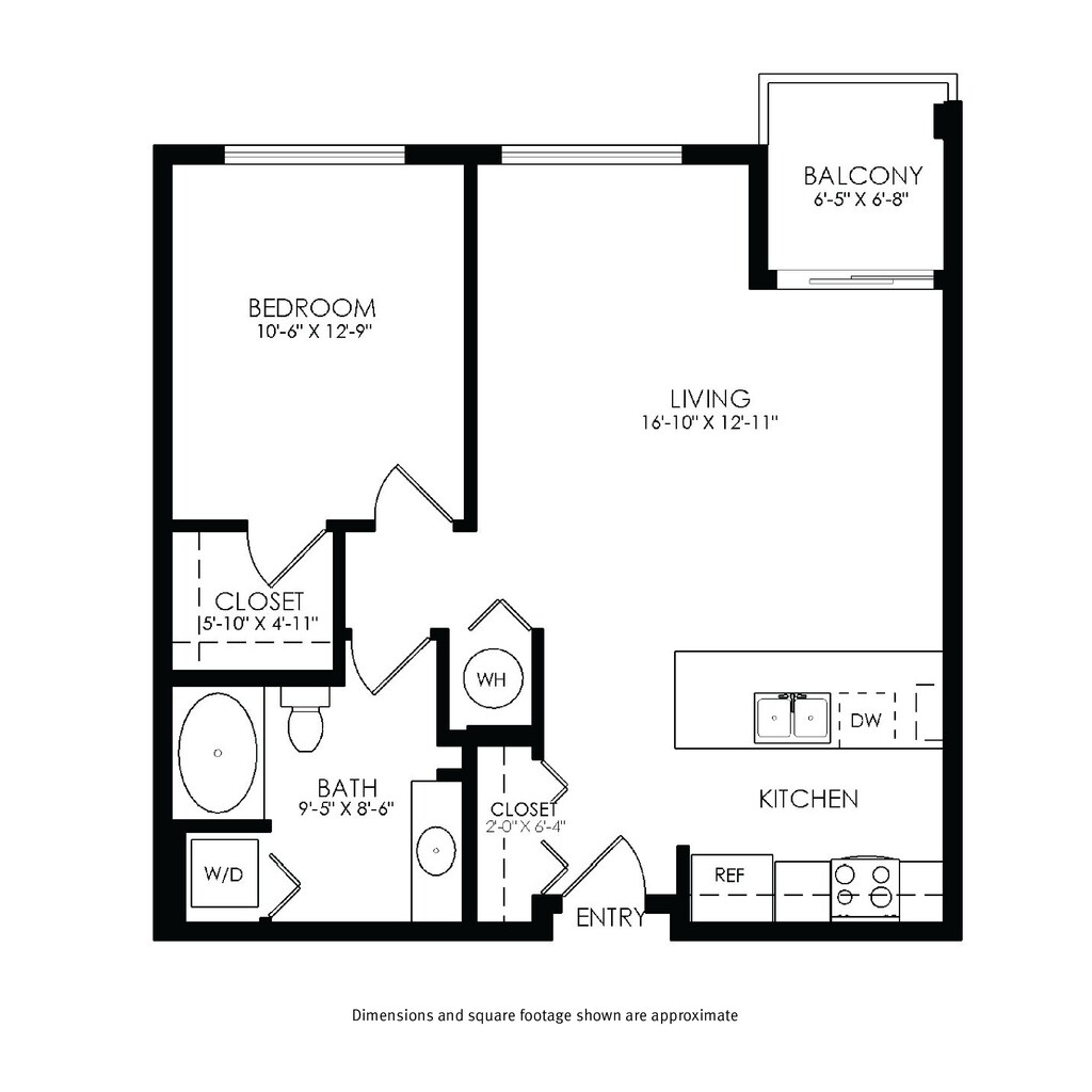 1 Dormitorio, 1 Baño, 725 pies²Disponible AhoraGalería del Modelo