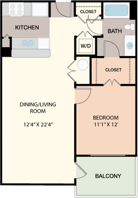 1 Dormitorio, 1 Baño, 737 pies²Precio Mensual TotalDisponible AhoraPrecio Mensual Total
