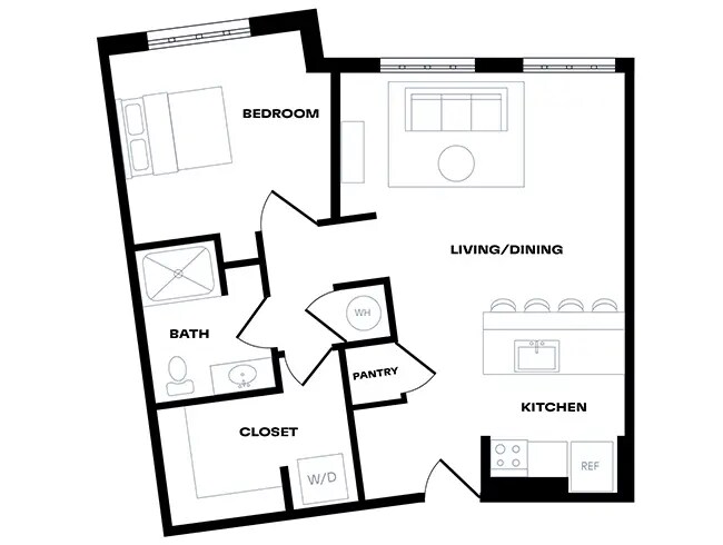 1 Dormitorio, 1 Baño, 742 pies²Disponible August 17, 2026Galería del Modelo