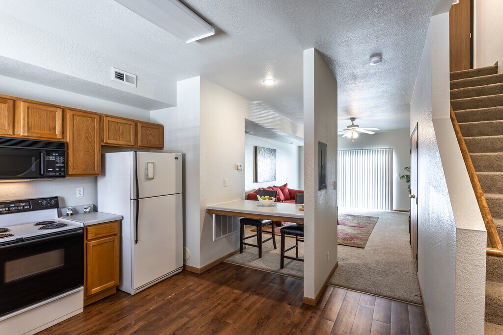 July 29, 2015The rent is ok because it includes utilities and cable. The townhouse has a fair sized kitchen. It includes a washer and dryer. The management have responded promptly to any issues with the unit. The grounds aren't great but my unit has a view of a wooded area that is very peaceful.Reseña de Apartments.com