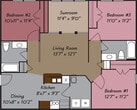3 Dormitorios, 2 Baños, 1250 pies²Galería del Modelo