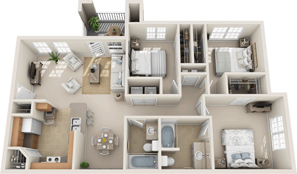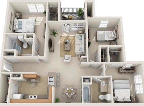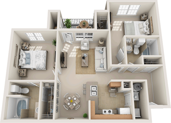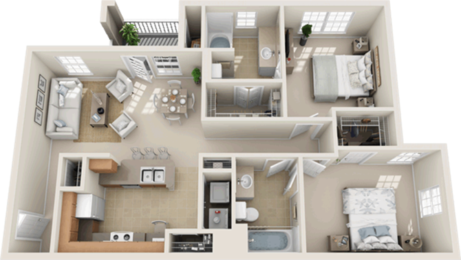 Modelo de apartamento: B1 - BrightonDesde $1,5582 Dormitorios, 2 Baños, 960 sq ftDisponible Ahora![]()