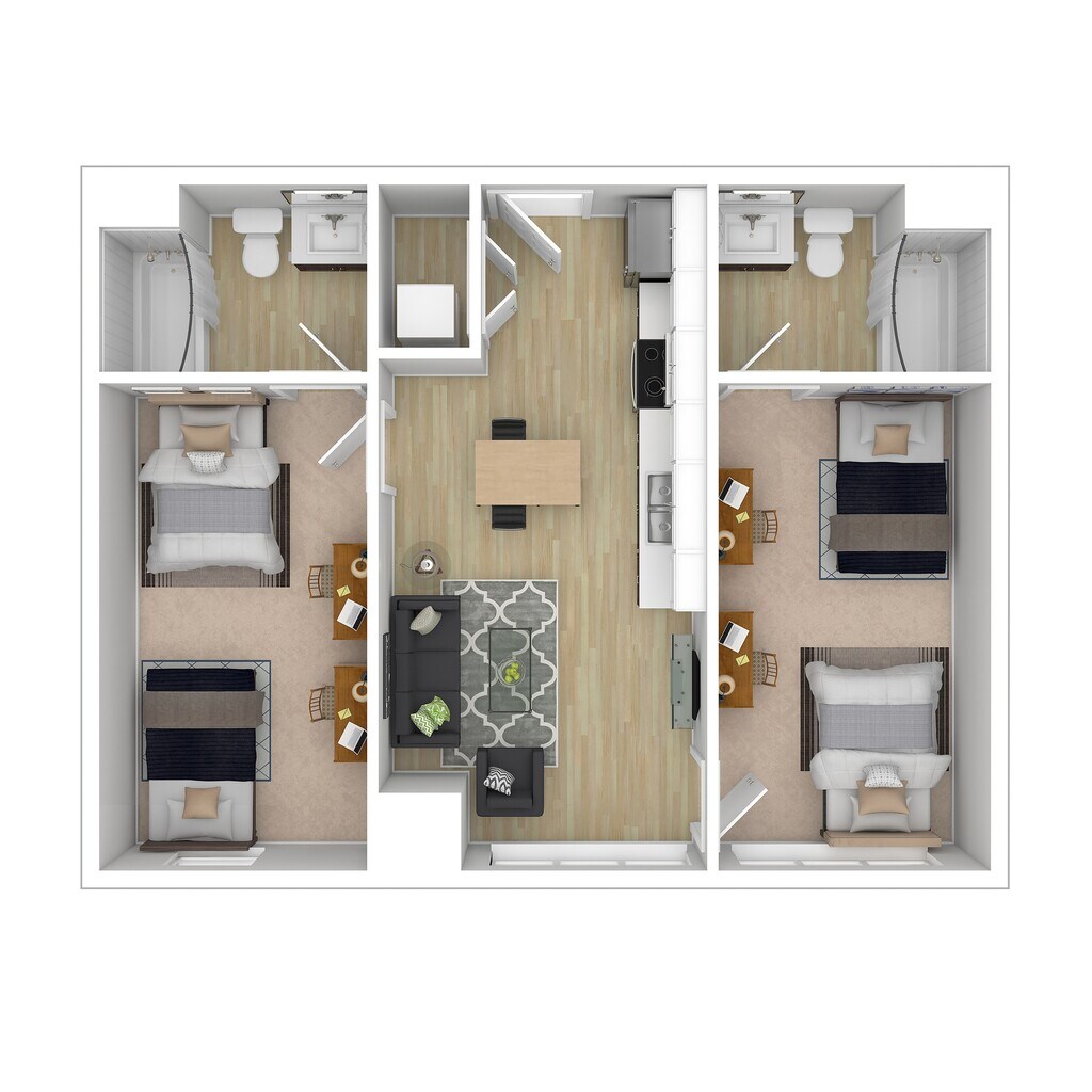 Modelo de apartamento: D44 Dormitorios, 4 Baños, 1150 sq ftNo Disponible![]()