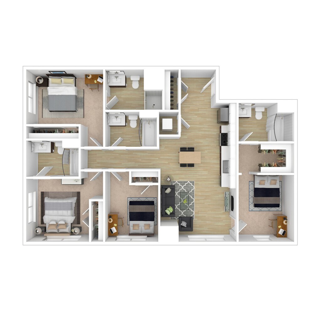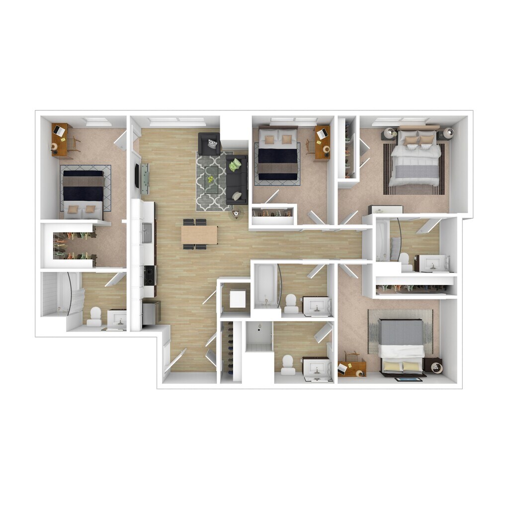 Modelo de apartamento: D54 Dormitorios, 4 Baños, 1226 sq ftNo Disponible![]()