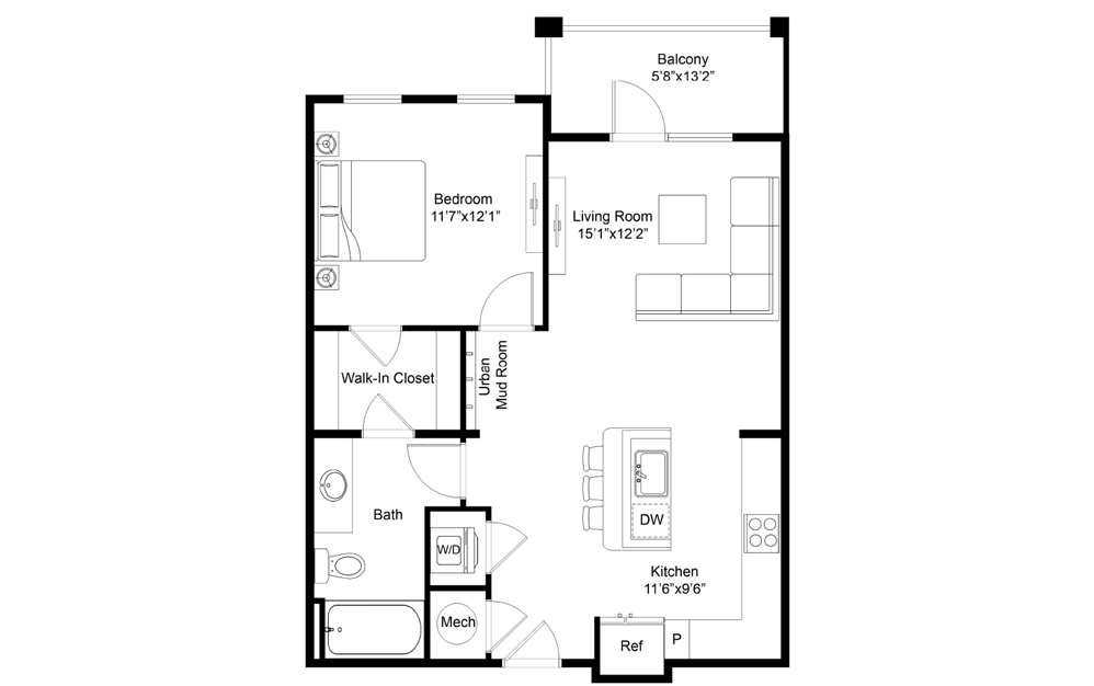 1 Dormitorio, 1 Baño, 807 pies²Disponible AhoraGalería del Modelo