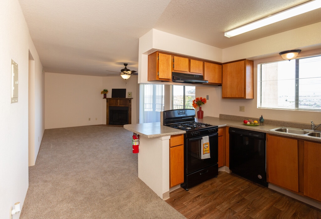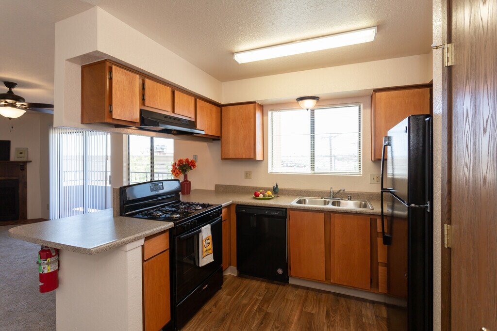 Encuentra tu nuevo hogar y tu sentido de aventura en Puerta del Sol Apartments en la fascinante Albuquerque. Con chimeneas a leña, amplio espacio de almacenaje y cocinas completamente equipadas, puedes comer bien y vivir bien en cualquiera de nuestros apartamentos de 1 o 2 habitaciones. Convenientemente ubicados en el lado oeste de Albuquerque, nuestros apartamentos están a una poca distancia a pie de restaurantes y supermercados, no muy lejos del campo de golf Desert Greens y Cottonwood Mall, y a una poca distancia en auto de tu próxima aventura. En menos de cinco minutos, puedes hacer caminatas en Piedras Marcadas Canyon o hacer un corto viaje en auto para descubrir Petroglyph National Monument o explorar Old Town. Ven a casa y aprovecha nuestro gimnasio y piscina climatizada y luego descansa y rejuvenece mientras disfrutas de la vista desde tu balcón cubierto privado. Con tanto para hacer y descubrir en las cercanías, los apartamentos de Puerta del Sol te ayudarán a combinar tu amor por explorar hermosos paisajes con una ubicación conveniente y un lugar acogedor para llamar hogar.