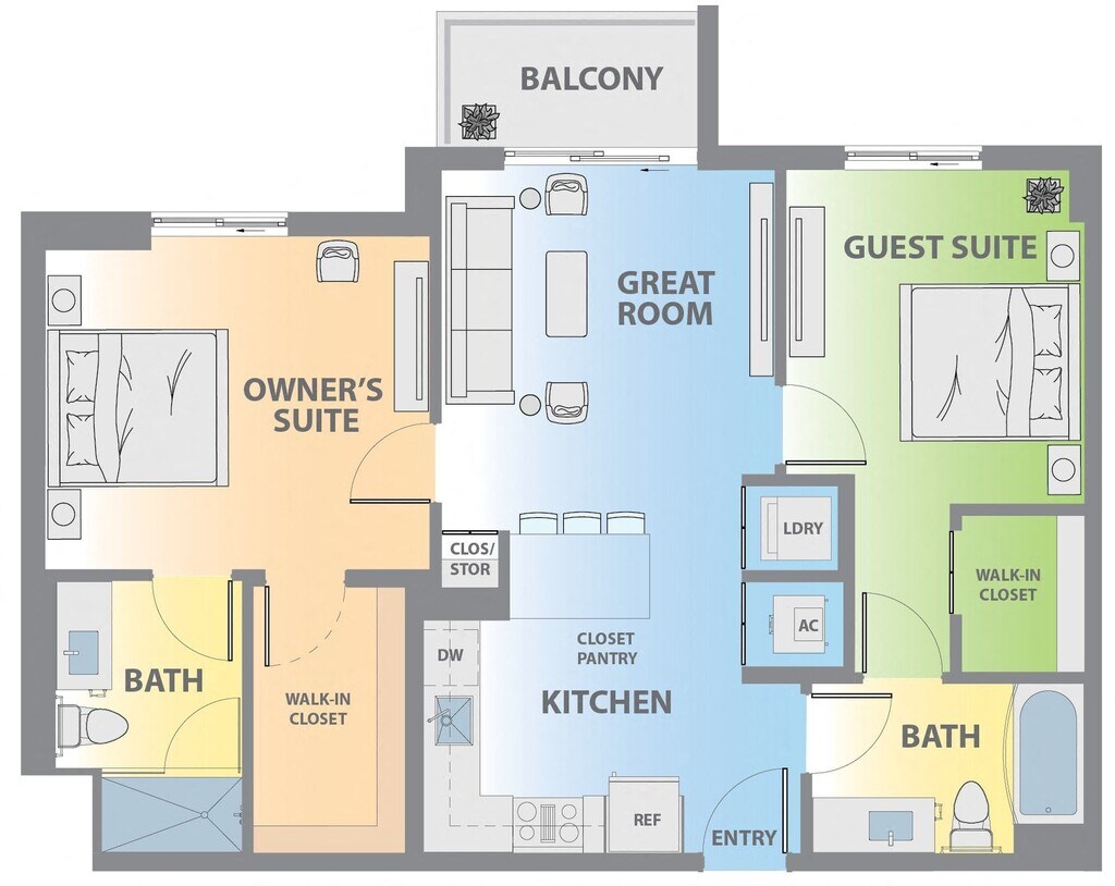 Modelo de apartamento: CancunDesde $2,6492 Dormitorios, 2 Baños, 900-910 sq ftDisponible Ahora![]()