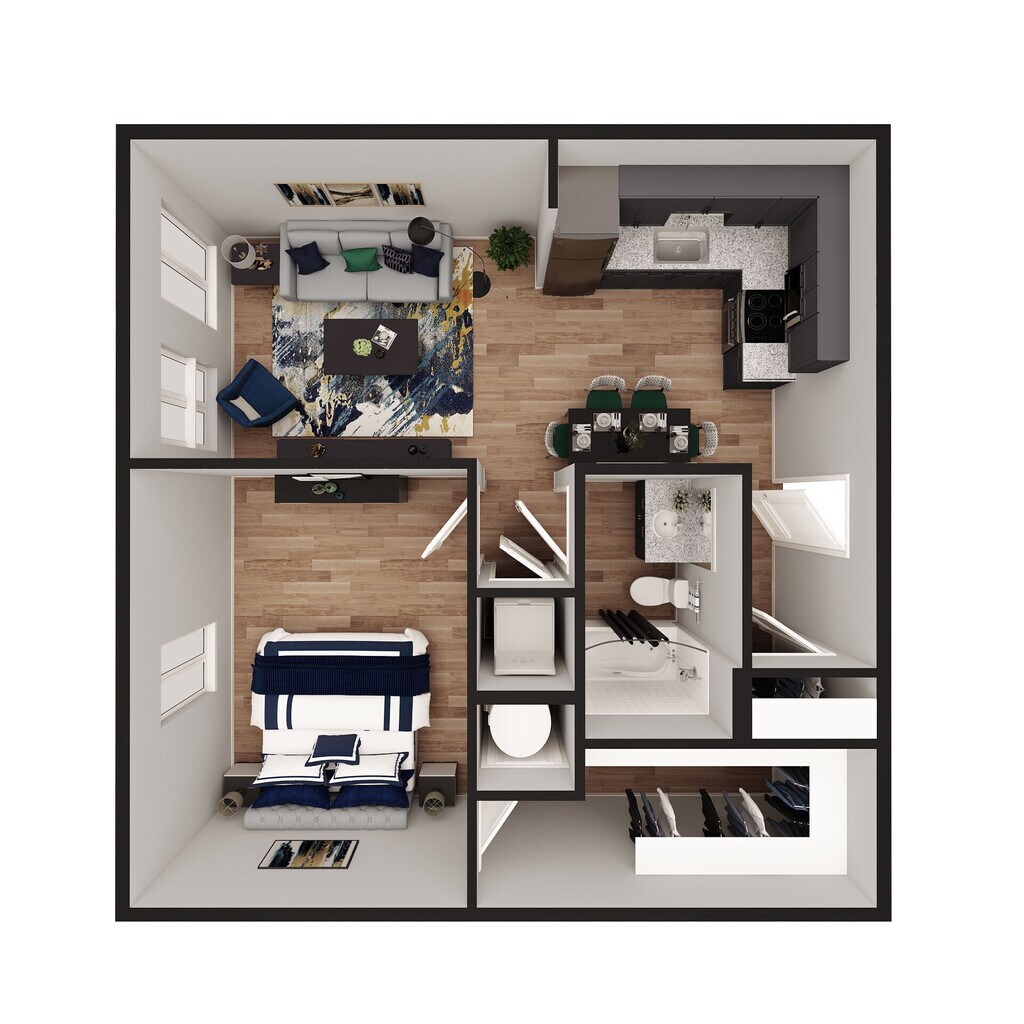 Modelo de apartamento: CobaltDesde $1,2251 Dormitorio, 1 Baño, 680 sq ftDisponible Ahora![]()