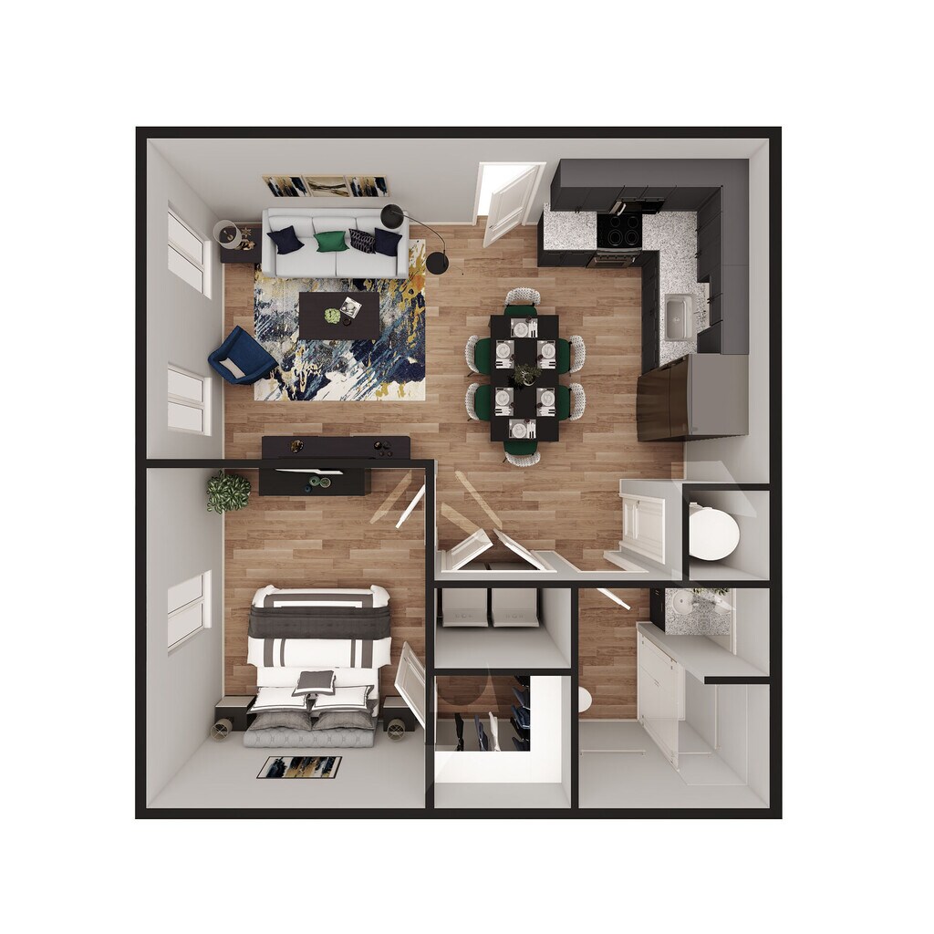 1 Dormitorio, 1 Baño, 705 pies²Disponible AhoraEl más grandeEsta opción tiene las unidades más grandes para este modeloGalería del Modelo