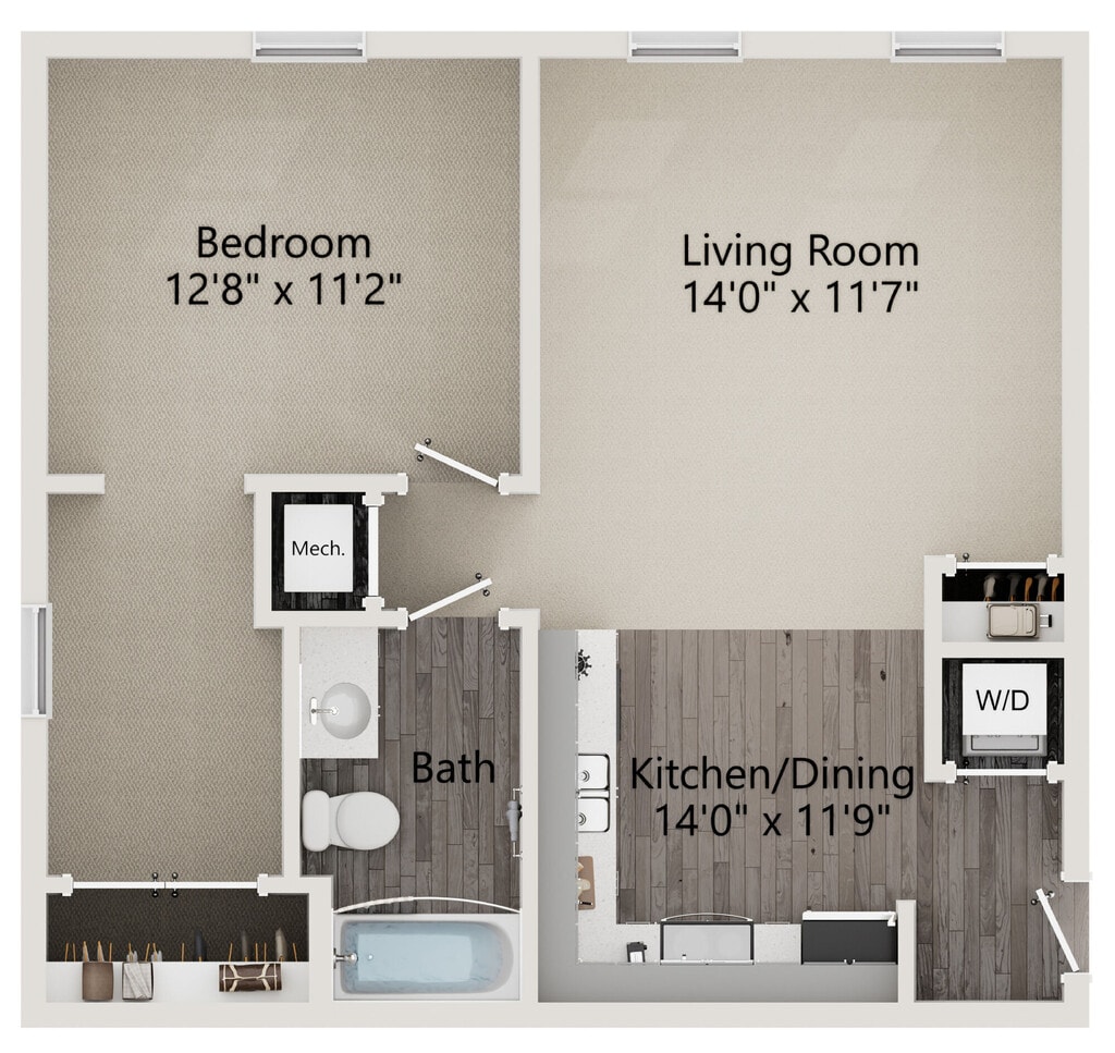 1 Dormitorio, 1 Baño, 680-682 pies²Disponible AhoraGalería del Modelo