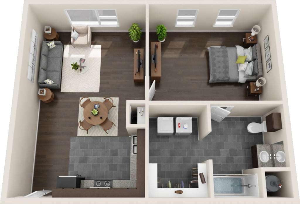 1 Dormitorio, 1 Baño, 687 pies²Disponible AhoraGalería del Modelo