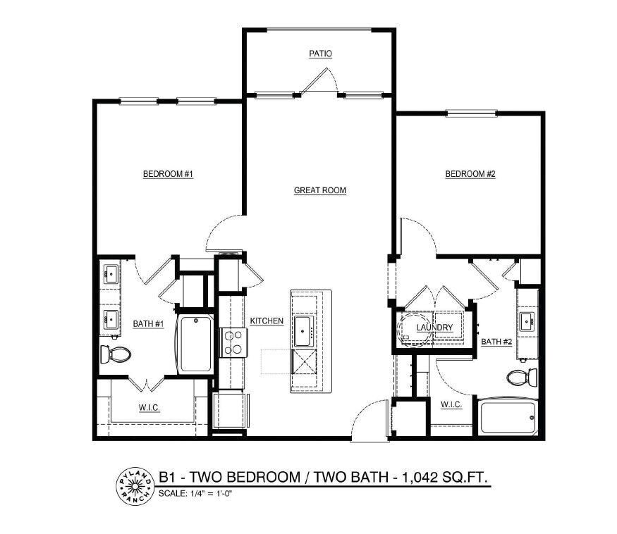 Modelo de apartamento: A1-1$1,2961 Dormitorio, 1 Baño, 642 sq ftDisponible Ahora![]()