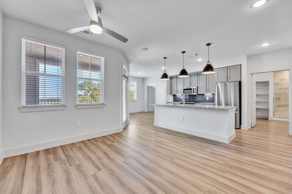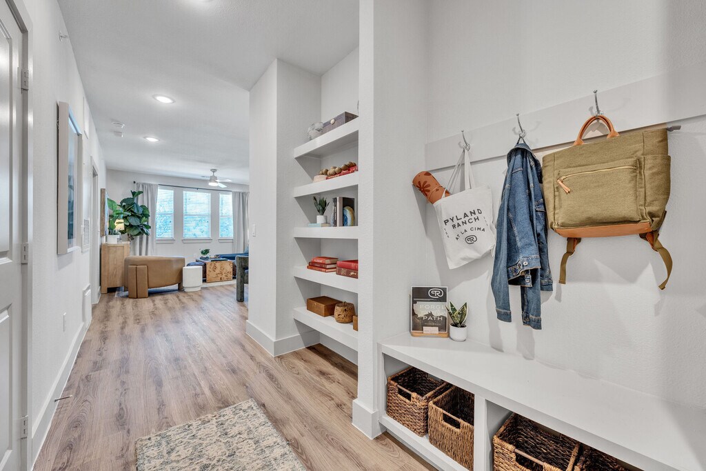 Tucked away, just west of San Marcos, is a place as rich in history as any Texas ranch you may or may not find on a map. Its name pays homage to the Pyland family, who started a blacksmith shop in 1865 — the hub of activity back in its day. Pyland Ranch is for those looking for life experiences reserved mostly for campfire tales. It’s where community is sparked as you explore the distinct and undeniable Texas hill country charm. Natural stone, warm woods, and strong architectural lines draw you in on a journey into your own private retreat. Details inspired by leather goods, forged metals, and vintage cars transport you to a time of handcrafted luxury. Giving you a glimpse of the next bend and beyond, oversized windows connect the indoors with the out. As you uncover your inner pioneering spirit, Pyland Ranch is a place that lets you live unbound.