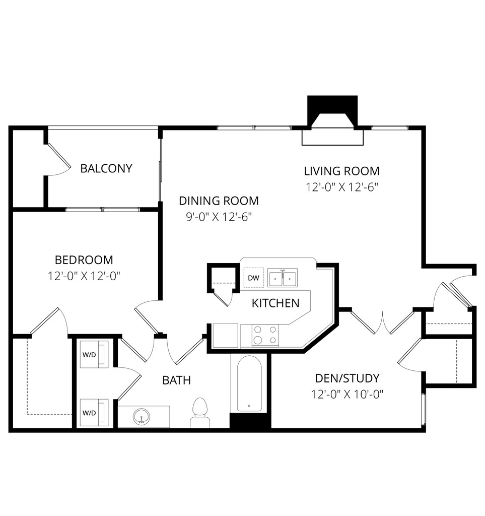 1 Dormitorio, 1 Baño, 791 pies²Disponible AhoraGalería del Modelo