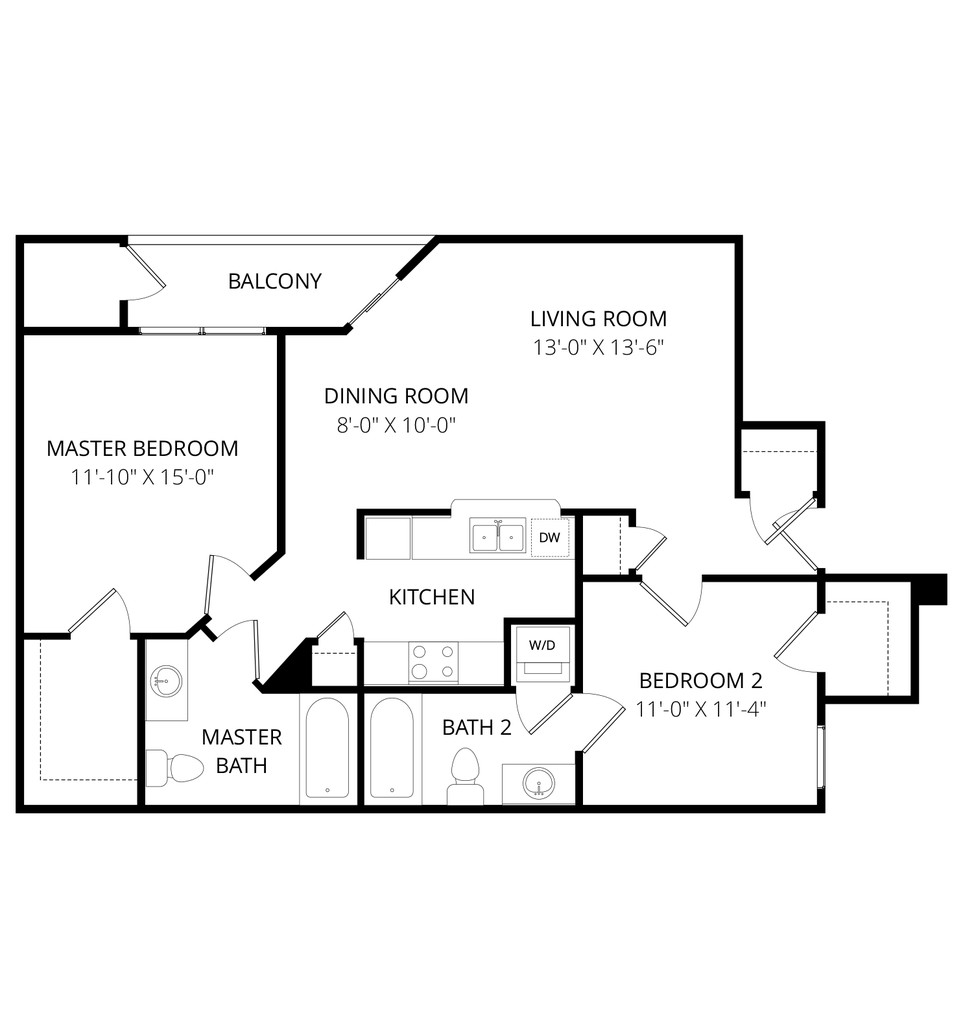 Modelo de apartamento: B2 Chisholm2 Dormitorios, 2 Baños, 1001 sq ftDisponible Ahora![]()