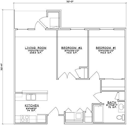 Modelo de apartamento: 2 Bedroom Unit2 Dormitorios, 1 Baño, 877 sq ftNo Disponible2 Bedroom Unit - Plano 1