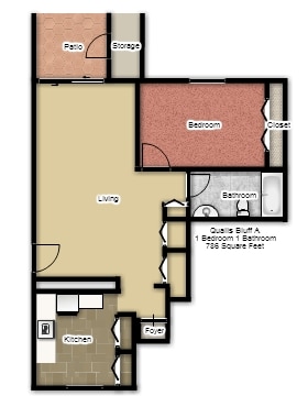 Modelo de apartamento: Quails Bluff ADesde $9651 Dormitorio, 1 Baño, 786 sq ftNo Disponible![]()