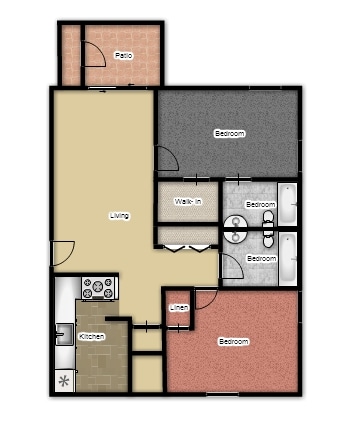 Modelo de apartamento: Quails Bluff CDesde $1,1102 Dormitorios, 2 Baños, 900 sq ftNo Disponible![]()