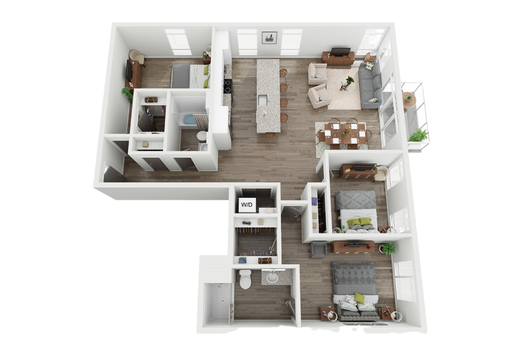 Modelo de apartamento: 3b/2b$2,6753 Dormitorios, 2 Baños, 1460 sq ftDisponible Ahora![]()