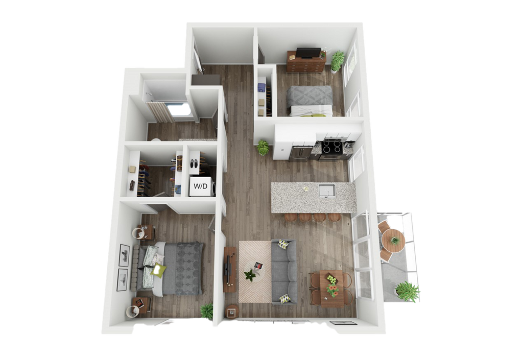 Modelo de apartamento: 2b/1b+$1,6952 Dormitorios, 1 Baño, 879 sq ftDisponible May 28, 2026![]()