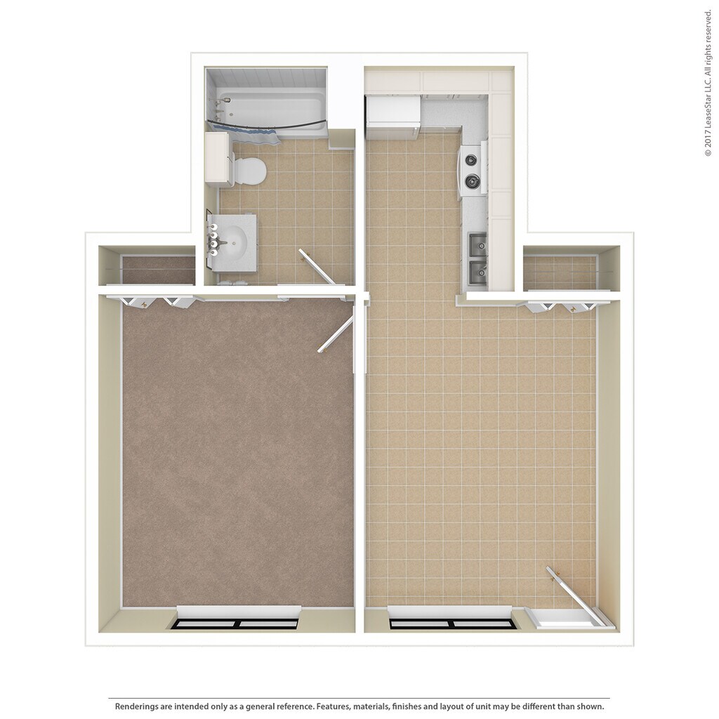 1 Dormitorio, 1 Baño, 660 pies²Precio Mensual TotalDisponible AhoraGalería del Modelo