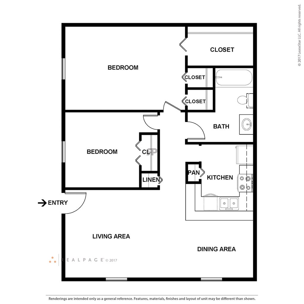 The Bonelli - Plano 2 Los planos son representaciones artísticas. Todas las dimensiones son aproximadas. El producto y las especificaciones reales pueden variar en tamaño o detalle. No todas las características están disponibles en cada vivienda en alquiler. Por favor, consulta con un representante para obtener más detalles.