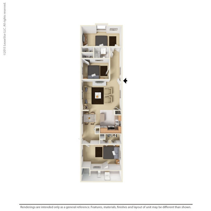 Modelo de apartamento: 3 Bed, 2 Bath3 Dormitorios, 2 Baños, 1232 sq ftNo Disponible3 Bed, 2 Bath - Plano 1