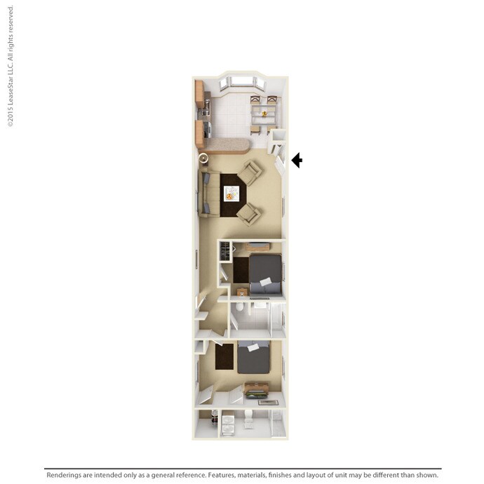2 Dormitorios, 1 Baño, 730 pies²Galería del Modelo