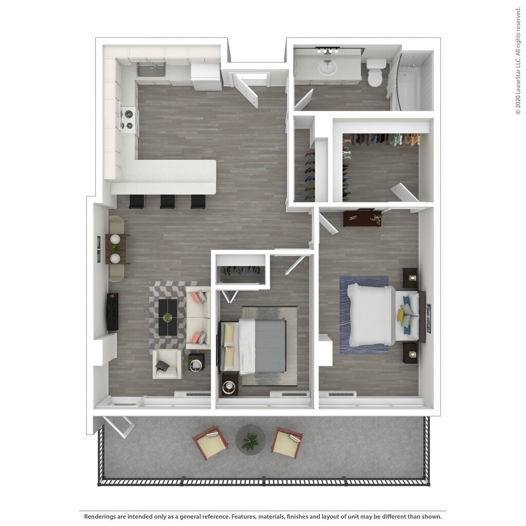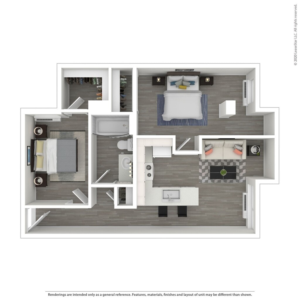 2 Dormitorios, 1 Baño, 756 pies²Galería del Modelo