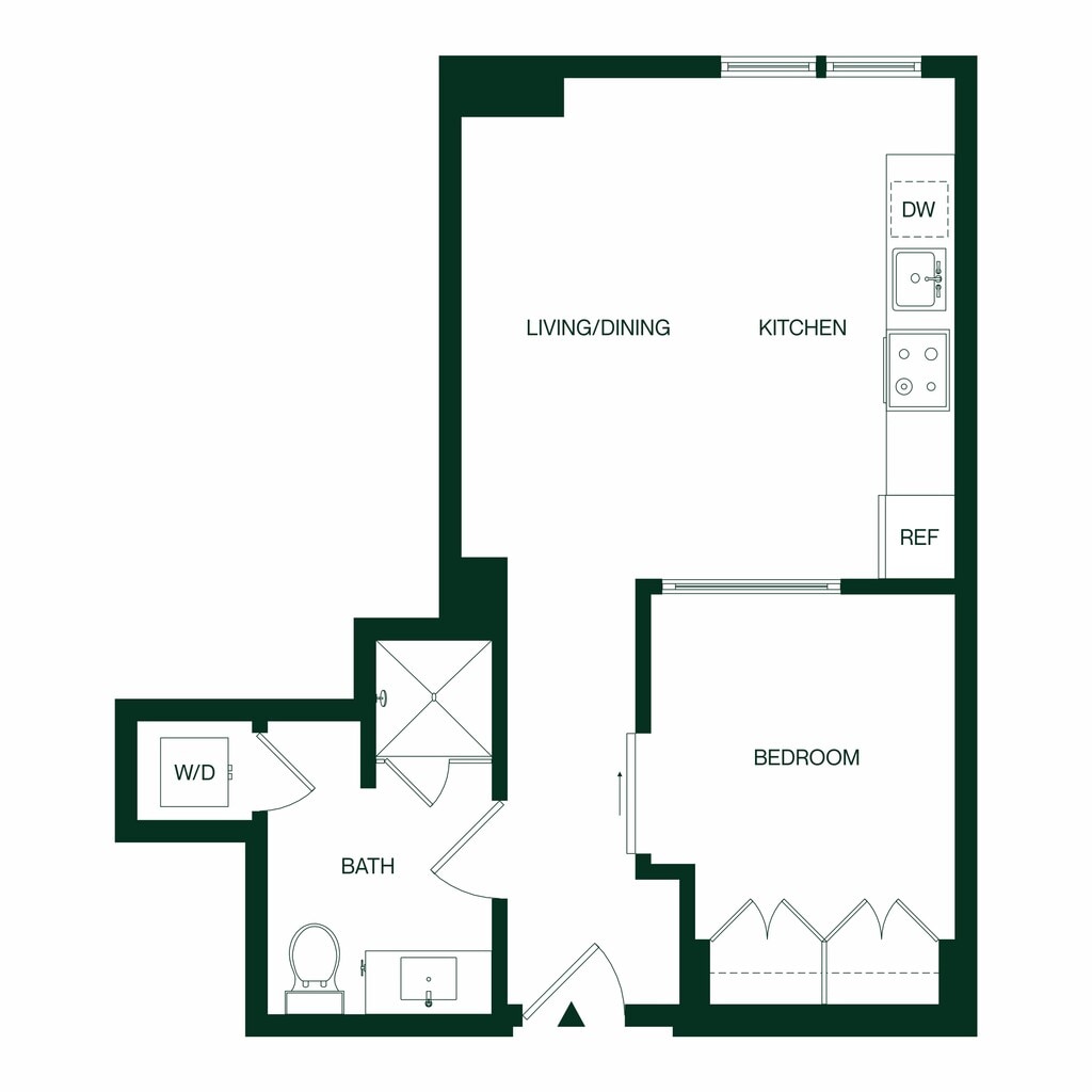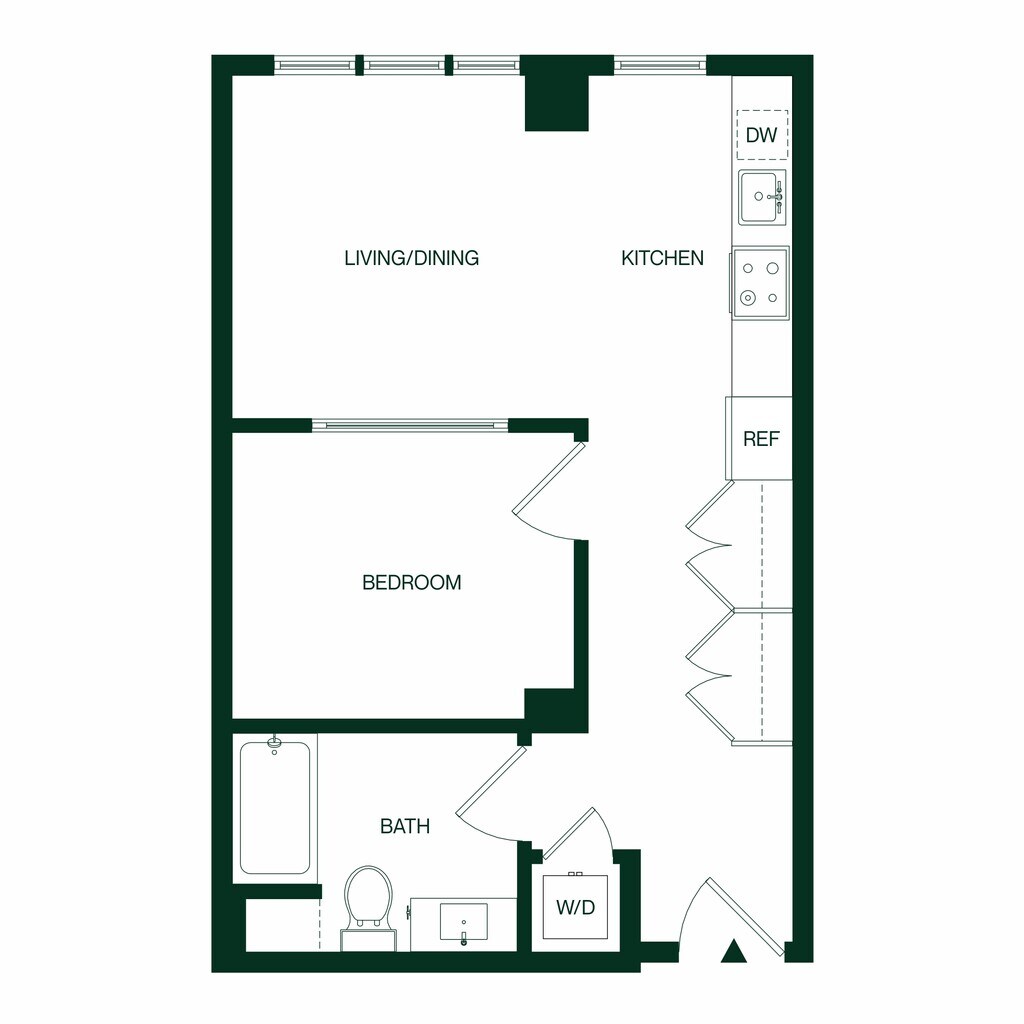 Estudio, 1 Baño, 503 pies²Disponible AhoraGalería del Modelo