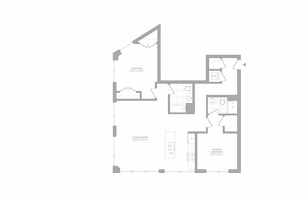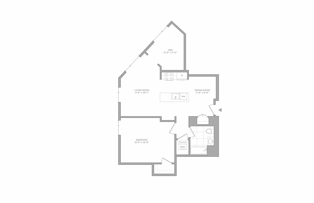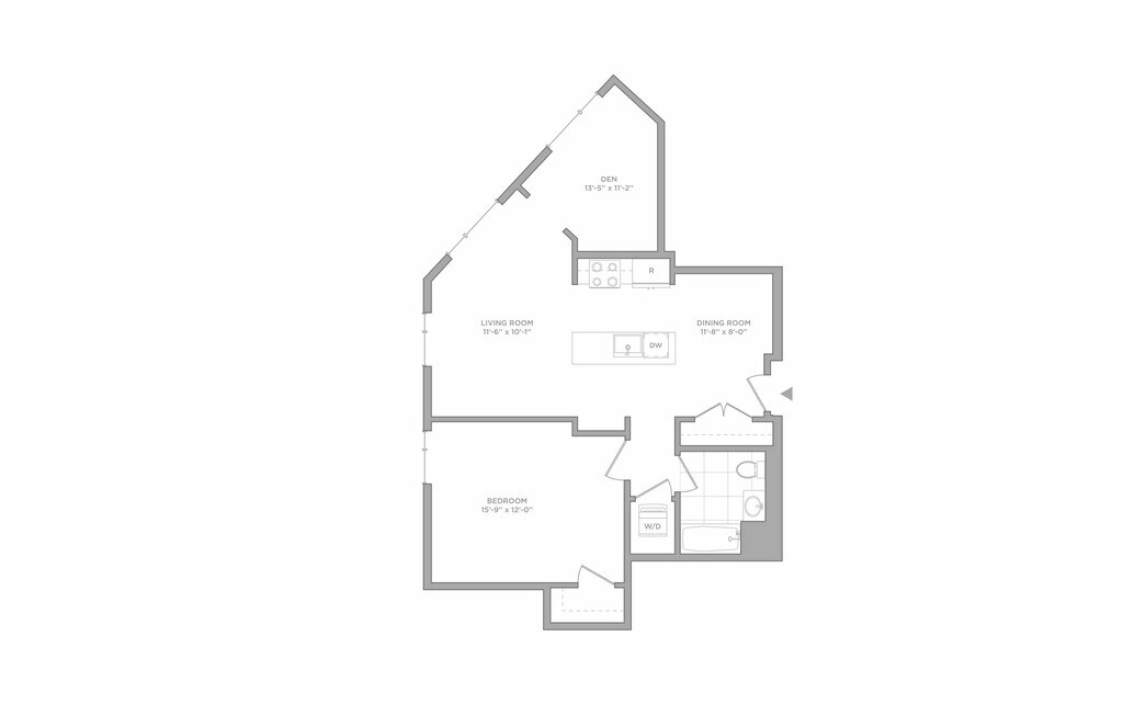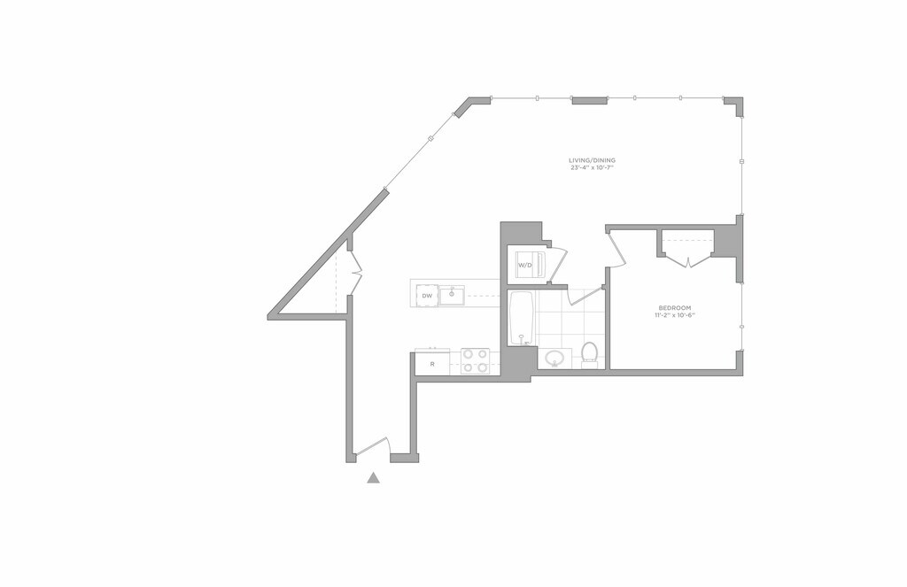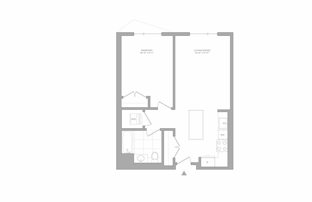 A1G - Plano 1 Unidad de apartamento: Quinn-1300Modelo de apartamento: A1GDesde $4,2741 Dormitorio, 1 Baño, 902 sq ftDisponible December 29, 2025Plano: A1B