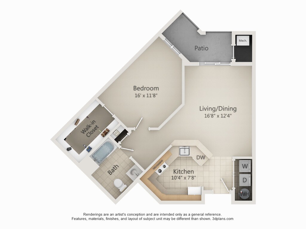 1 Dormitorio, 1 Baño, 859 pies²Disponible AhoraGalería del Modelo