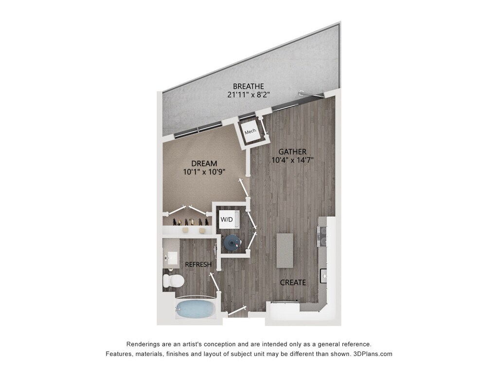 1 Dormitorio, 1 Baño, 547 pies²Disponible AhoraGalería del Modelo