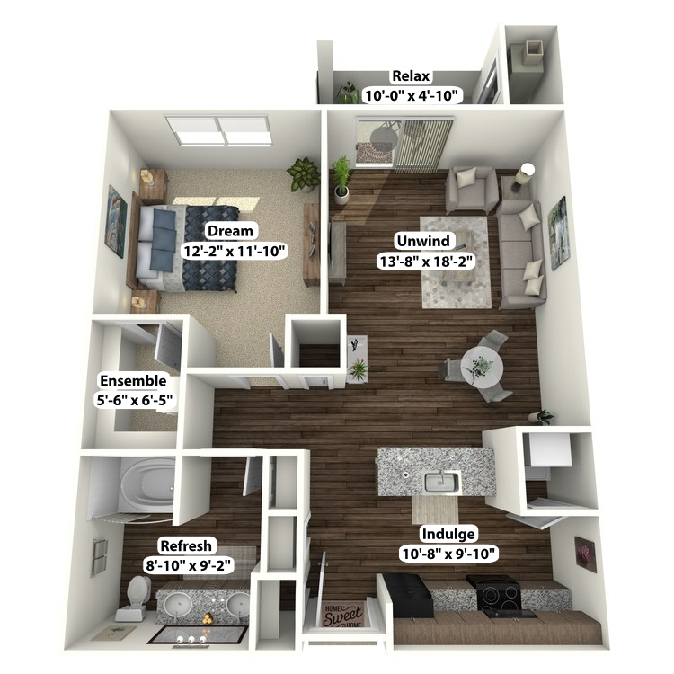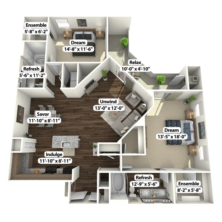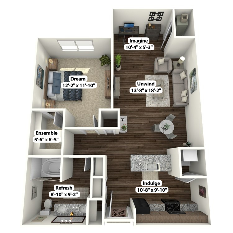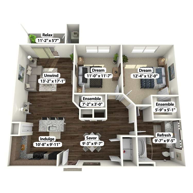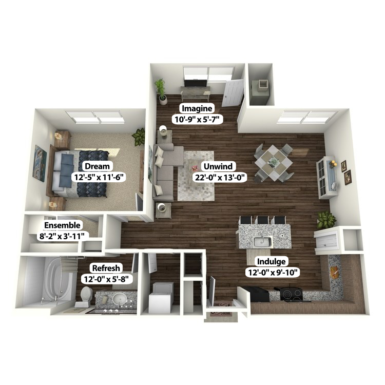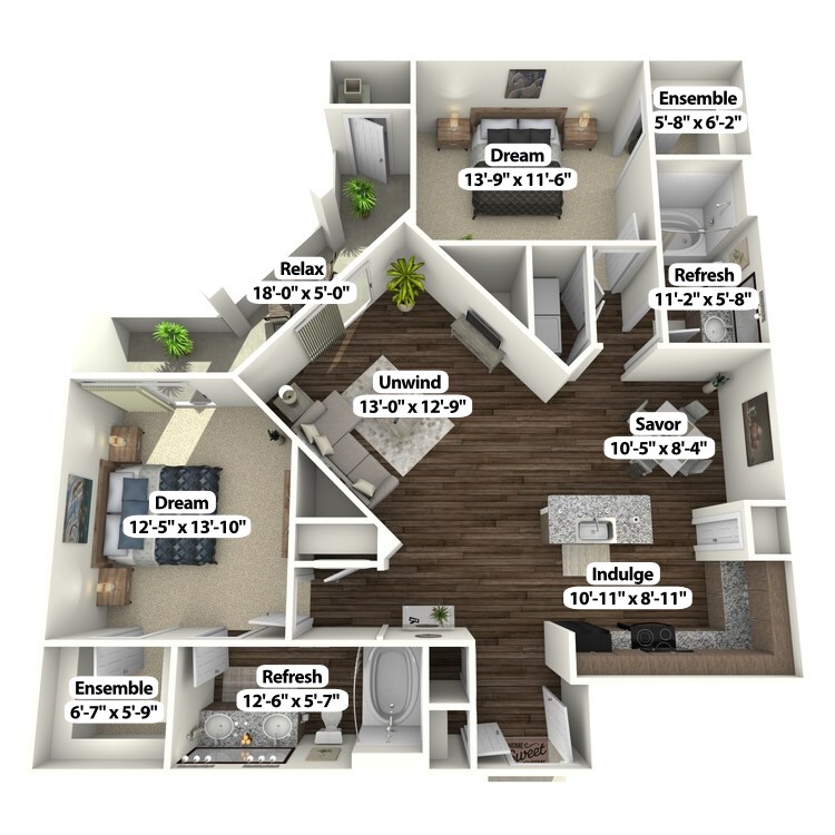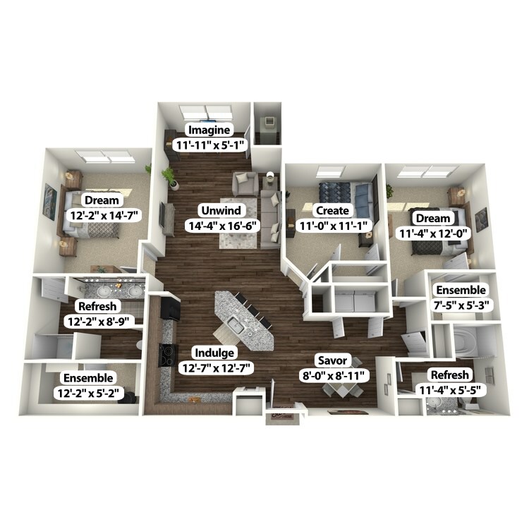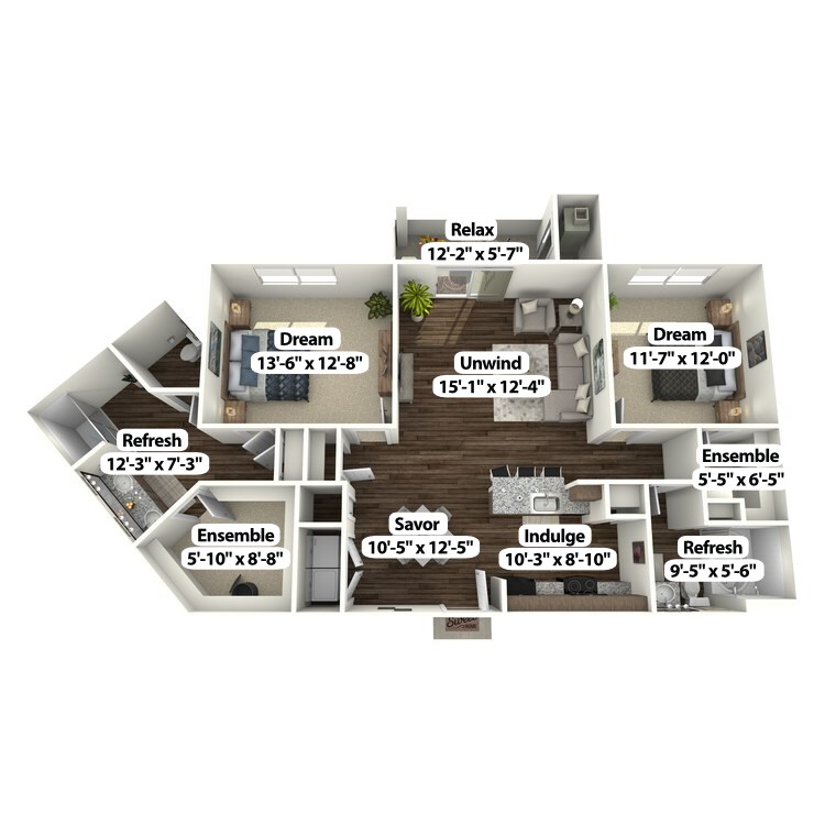 Modelo de apartamento: BrillianceDesde $1,4951 Dormitorio, 1 Baño, 856 sq ftDisponible Ahora![]()