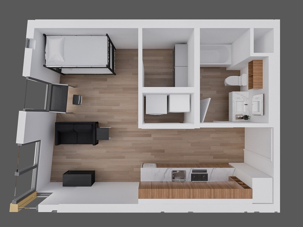 Estudio, 1 Baño, 470 pies²Disponible Aug 1, 2026Galería del Modelo