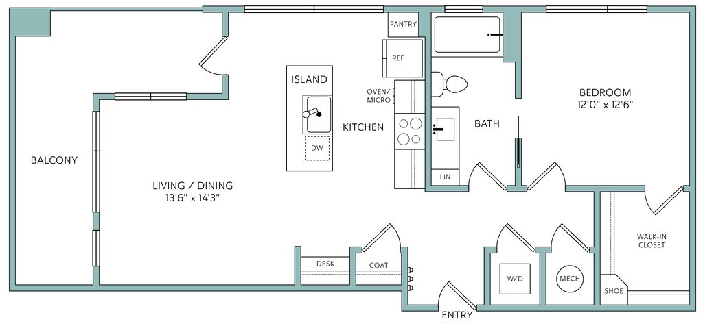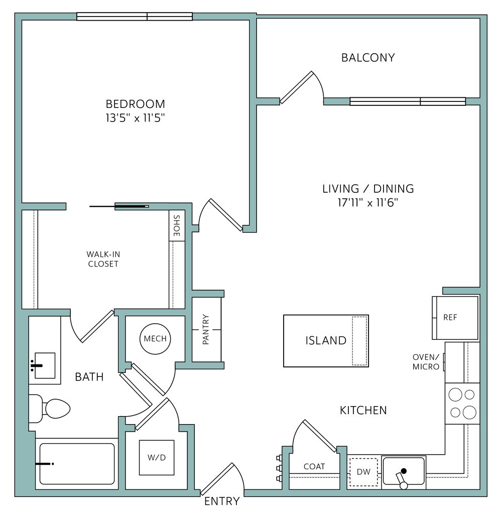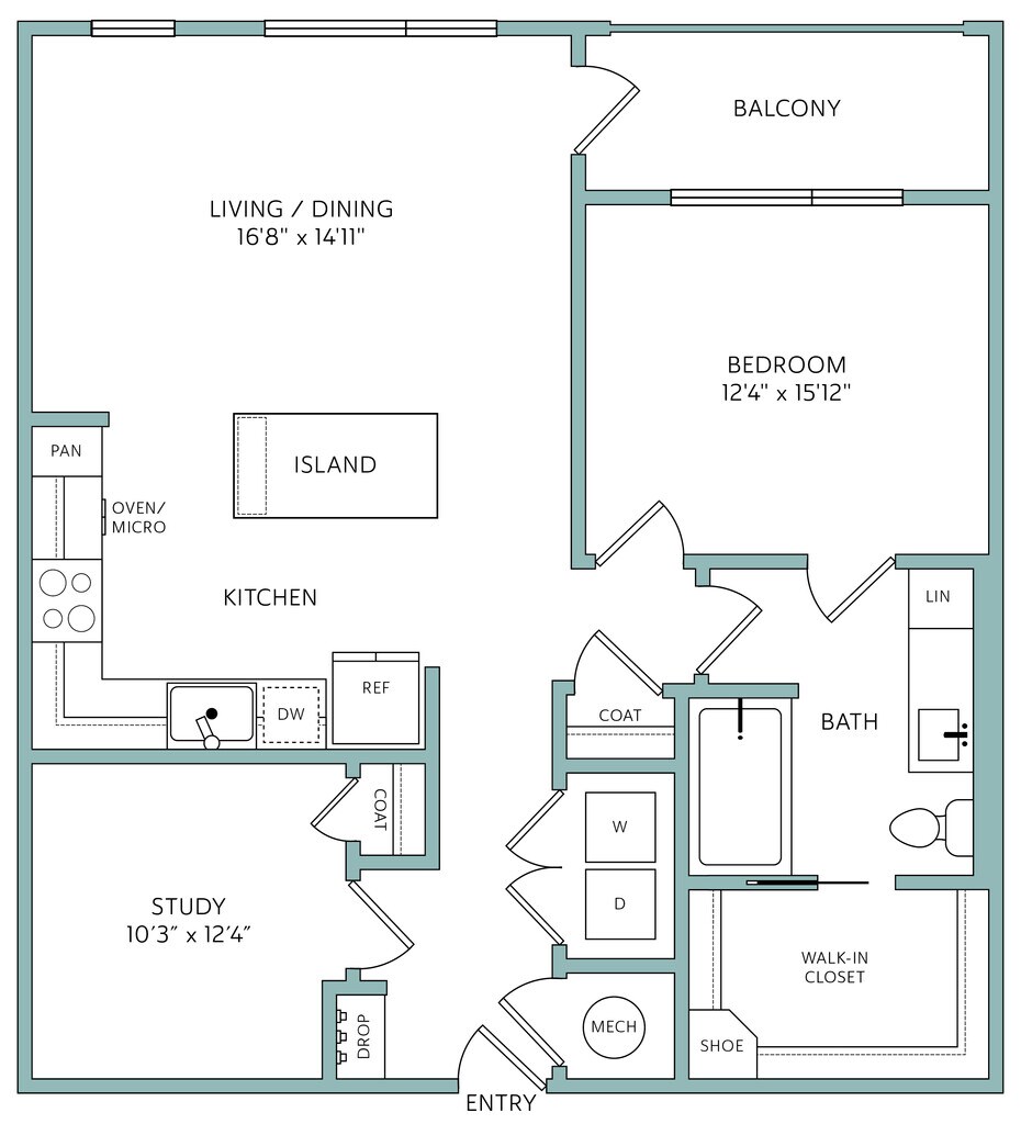 Estudio, 1 Baño, 534 pies²Disponible AhoraGalería del Modelo