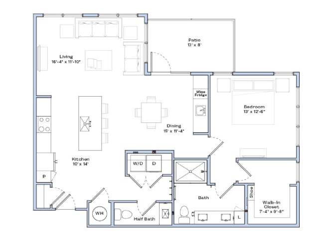 1 Dormitorio, 1 Baño, 545 pies²Disponible AhoraGalería del Modelo