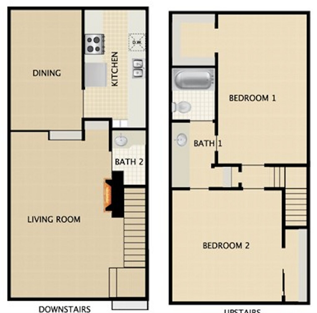 2 BEDROOMS 1.5 BATHS