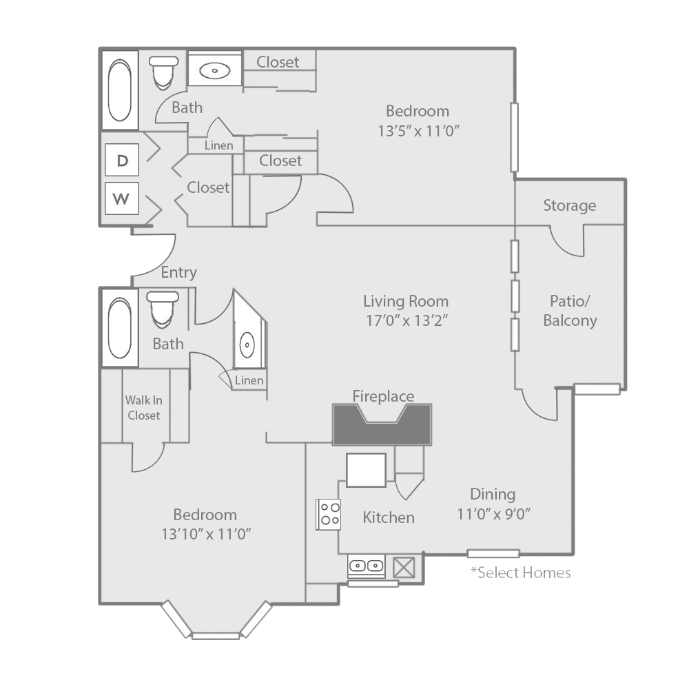 Modelo de apartamento: The GenevaDesde $1,3772 Dormitorios, 2 Baños, 1198 sq ftDisponible Ahora![]()