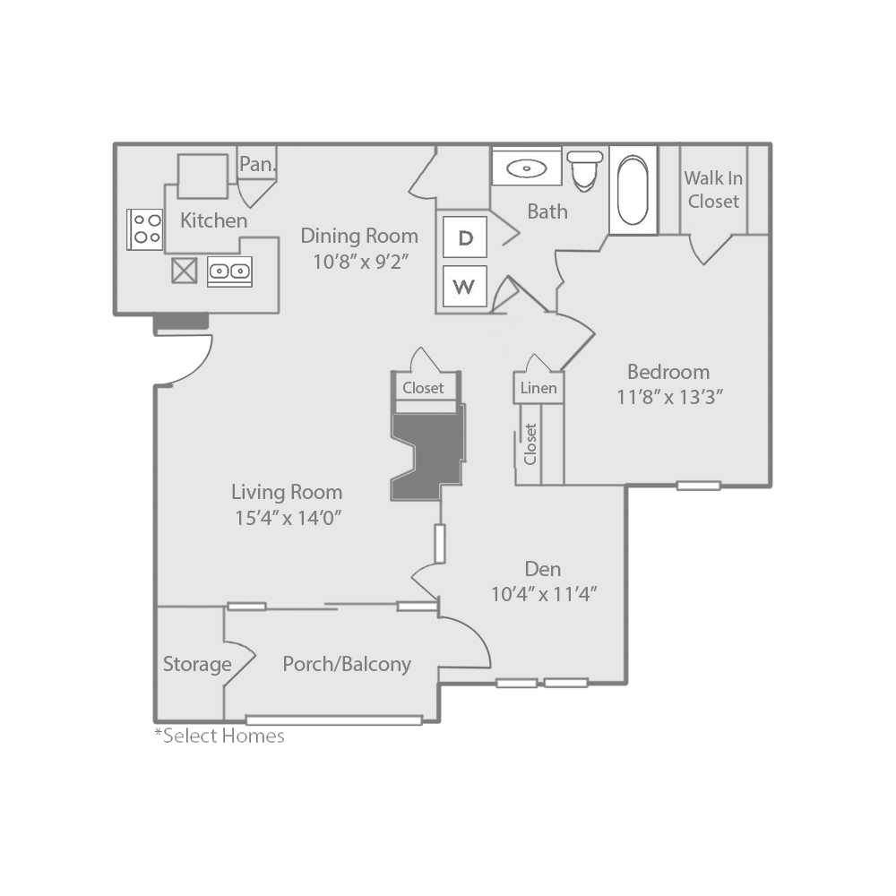 1 Dormitorio, 1 Baño, 800 pies²Disponible AhoraGalería del Modelo