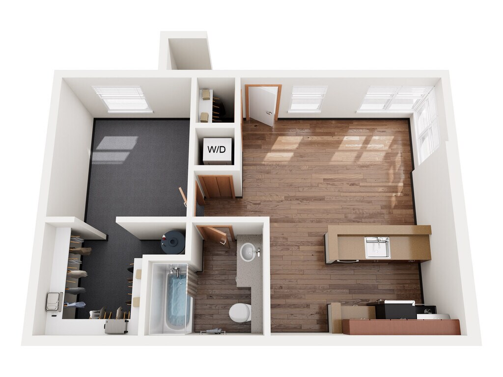 Modelo de apartamento: 575 SF - 1 Bedroom and Large Loft$1,9851 Dormitorio, 1 Baño, 575 sq ftDisponible November 21, 2025PlanosFotos![]()