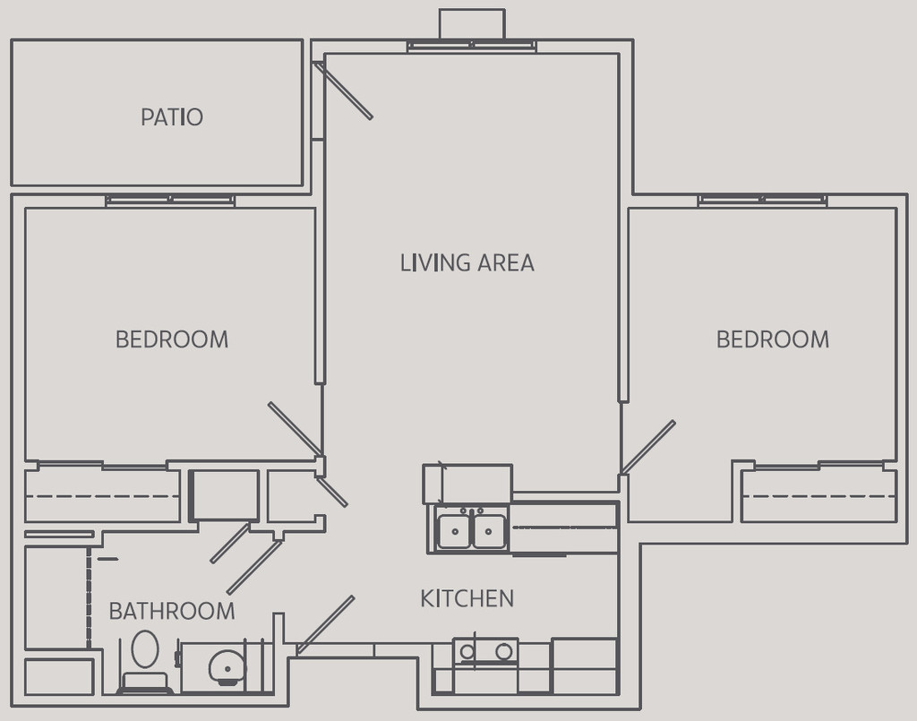 2 Dormitorios, 1 Baño, 700 pies²Galería del Modelo