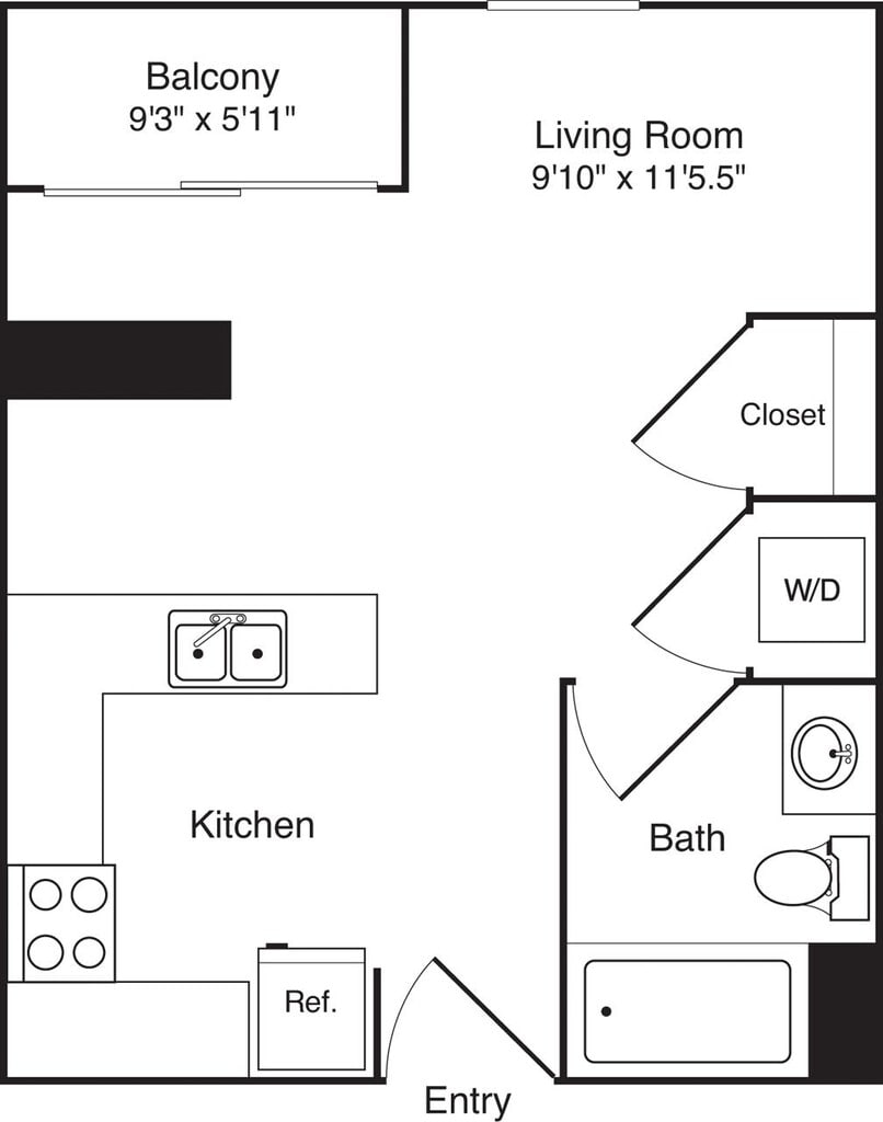 Estudio, 1 Baño, 403 pies²Disponible AhoraGalería del Modelo