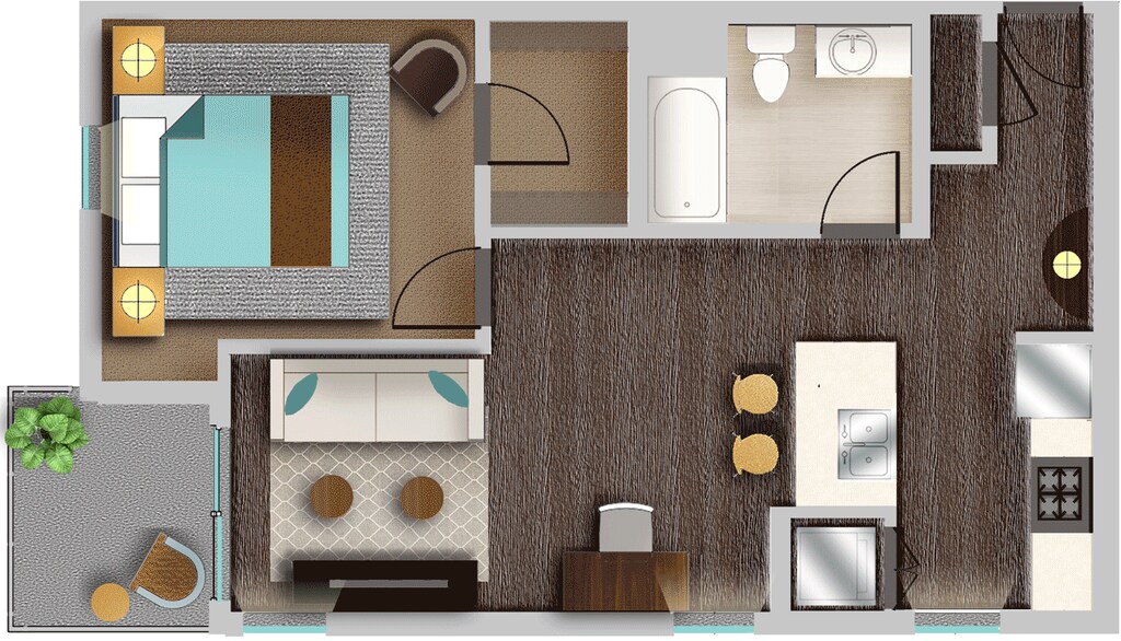 Modelo de apartamento: A13Desde $1,932Estudio, 1 Baño, 533 sq ftDisponible November 14, 2025![]()