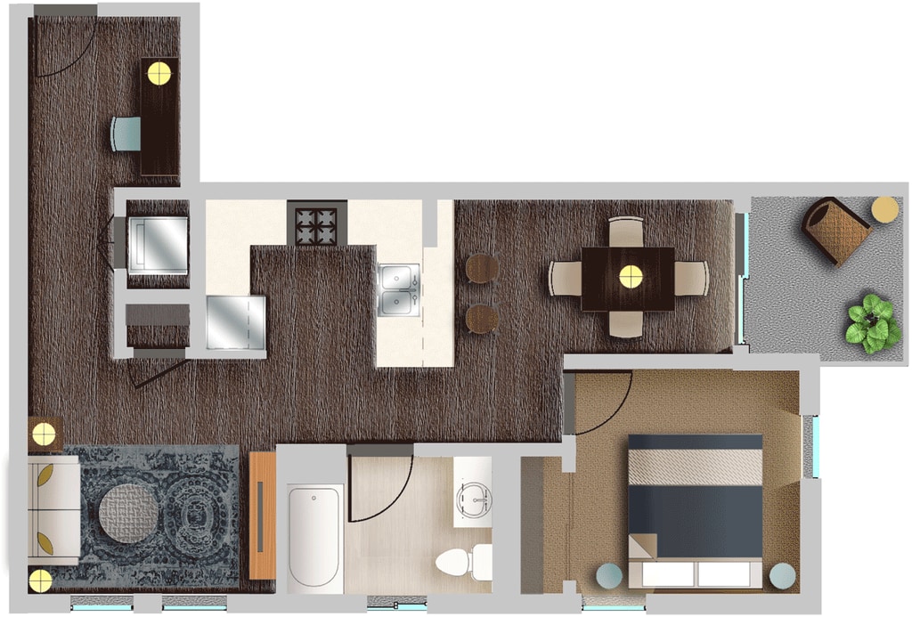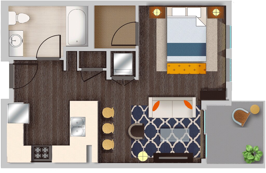 Modelo de apartamento: A15Desde $1,921Estudio, 1 Baño, 546 sq ftDisponible Ahora![]()