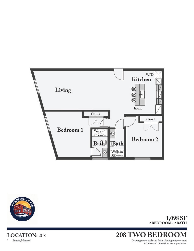 Railroad Lofts ofrece apartamentos de 1 a 2 Dormitorios desde $2,250. Aquí está el precio actual y la disponibilidad: