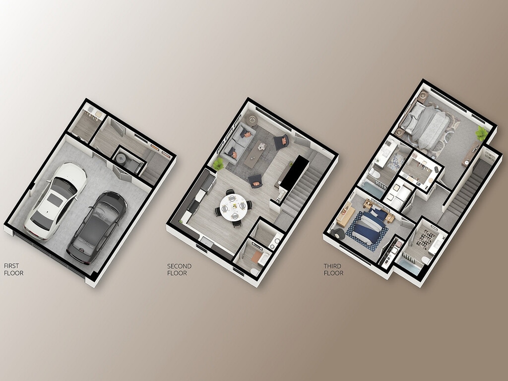 2 Dormitorios, 2.5 Baños, 1291-1302 pies²Disponible AhoraGalería del Modelo