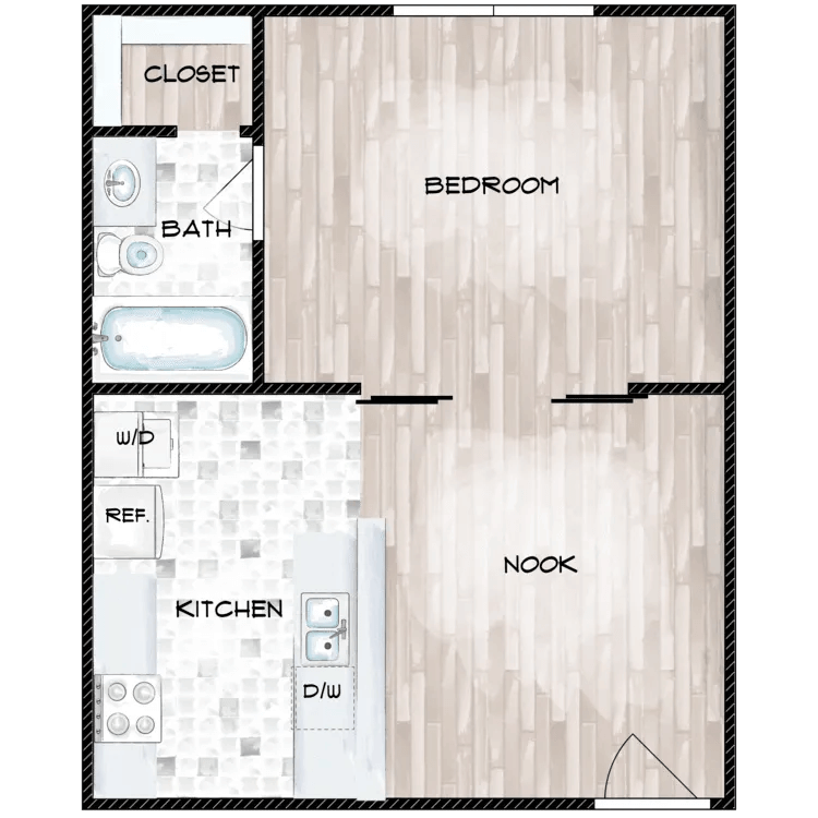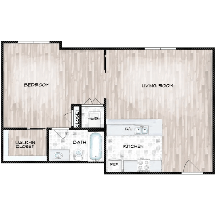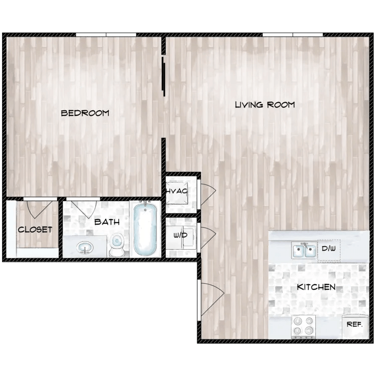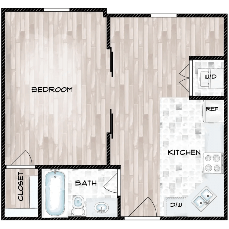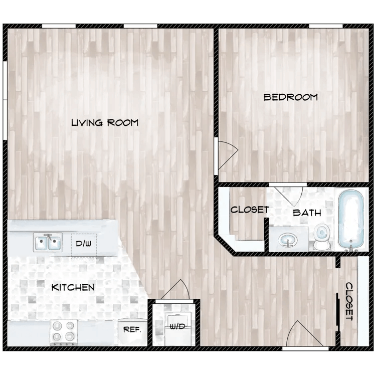 1 Dormitorio, 1 Baño, 845 pies²Disponible AhoraEl más grandeEsta opción tiene las unidades más grandes para este modeloGalería del Modelo