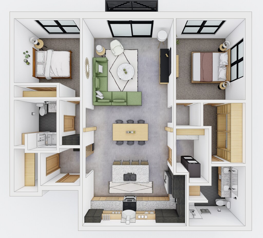 2 Dormitorios, 2 Baños, 1215 pies²Disponible Oct 7Galería del Modelo